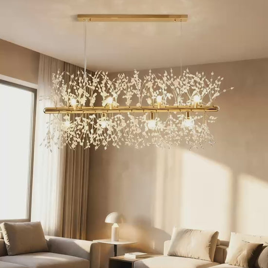 Denna exklusiva taklampa kombinerar minimalistisk design med lyxig karaktär. De 12 ljuskällorna tillsammans med de guldiga accenterna skapar ett varmt och välkomnande ljus som lyfter atmosfären i rummet.